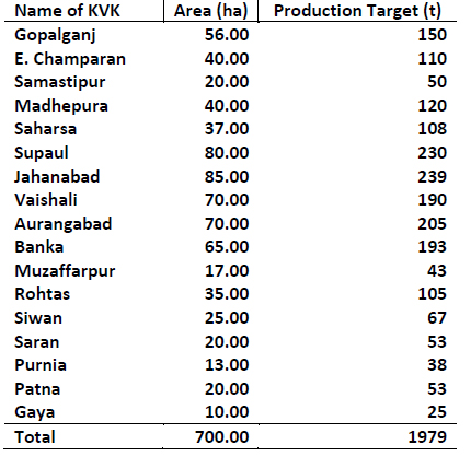 • The interested farmers found suitable for the programme are registered in the KVK of their district with a nominal payment of registration fee (Rs. 500). Foundation seed is provided by the University on reasonable prices. The seed crop is registered to the Bihar State Seed Certification Agency, Mithapur, Patna by the farmers on the recommendation of KVK.
