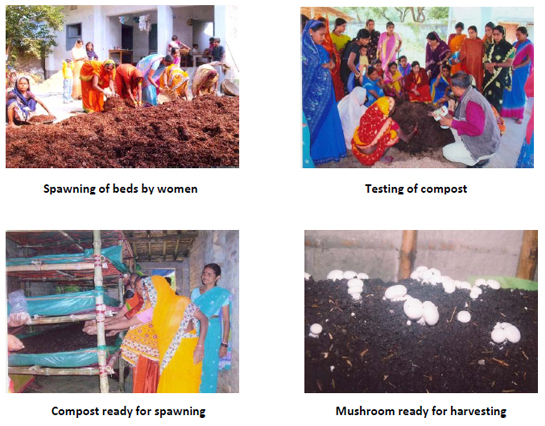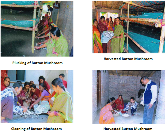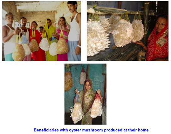 Bahadurpur is another village of Morsand, Pusa (Dist. Samastipur) where farmers usually keep themselves busy in agriculture activities only. The team contacted the women to form FIG for mushroom production and a similar FIG of 20 women were formed of which Mrs. Sudha Devi was elected as leader. This group was also trained for mushroom production at their doorstep. The group has not only started mushroom production but each member of the group has also disseminated his knowledge to atleast 5 persons for mushroom production. They are earning Rs. 700-1000 every month individually by selling mushroom.