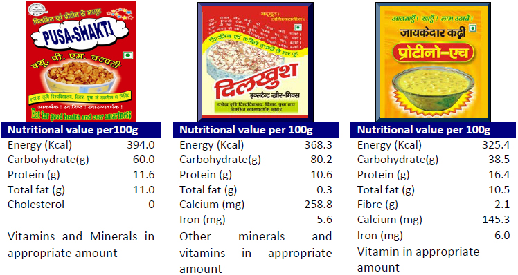 A tremendous enthusiasm and continuous effort with hard labour and zeal by two scientists, Dr. Usha Singh, University Professor, Department of Food and Nutrition, College of Home Science, RAU Pusa and Er. Subhash Chandra, Assistant Professor, Department of Farm Machinery, College of Agricultural Engineering, RAU Pusa helped in conversion of the ideas behind commercialization of QPM based products into realities. The commercial production of Pusa-Shakti (QPM Chatpati) has been started by an enterprise named M/S Om Shakti Foods located at Sujawalpur (Dholi) of Muzaffarpur district. The other two products named Dilkhush (instant kheer-mix) and Proteino-H (kadhi-mix) was launched in the market for sale in the month of June, 2009. Dilkhush (Kheer-mix) and Proteino-H (Khadi-mix) are being produced by M/s Guru Kripa Foods, Ramdayalunagar, Muzaffarpur and M/s Pragati Swawlambi Sahkari Samitee, Dholi, Sakara, Muzaffarpur, respectively.